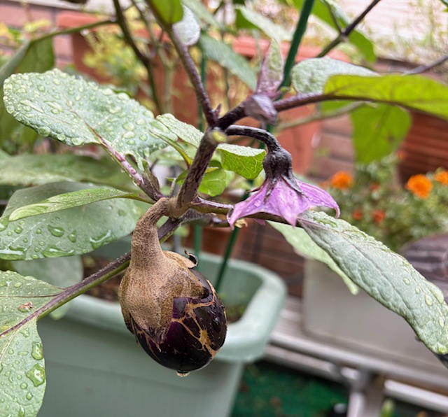 冬茄子!? 英国やアイルランドで茄子はaubergeneと呼ばれる。ただこの寒さで aubrrrrgene だ。加賀の千代女の えりまきを とらぬなすびの あつさかな は、茄子のへたが襟巻きのようで暑苦しいという真夏の句だが、これをもじり、 秋なすび えりまき厚く 冬もよい global warmingを減じるためにビル・ゲーツはdimmingと呼ばれる遮光技術で太陽光を弱化せんとしているが、この寒さはそのせいなのか。