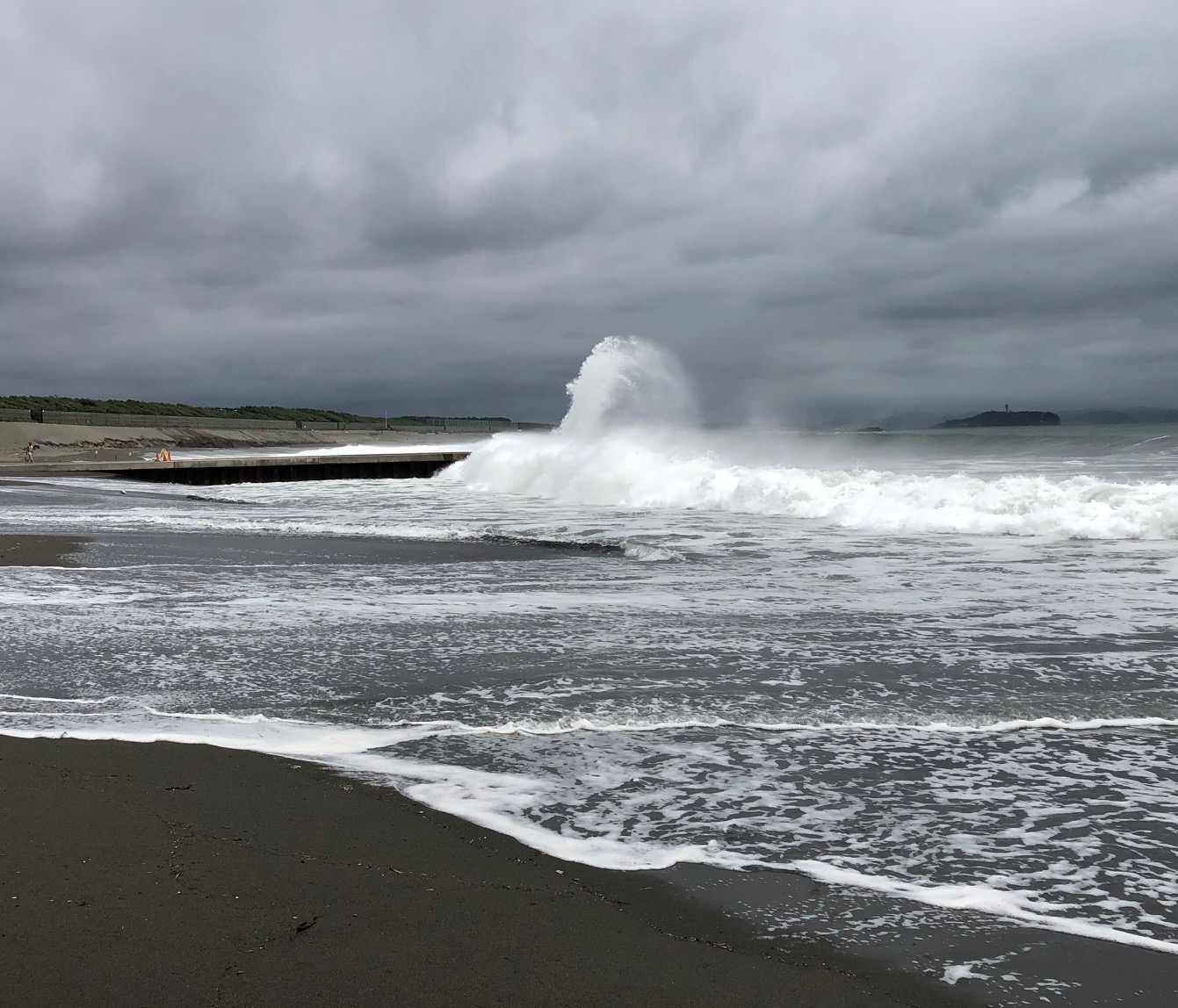 茅ヶ崎のサザン海岸に打ち寄せる大波です。