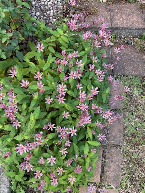 これは最近開花をはじめたショートなこんもりホトトギスで、「おや、お兄さん、おかえり!」と数十回、みんなで声を掛けてくれます。これをunseeしろと言われたってあなた。お、誰も言ってない。こりゃまた。(^0^)