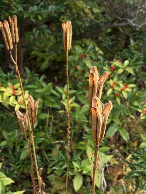 好きな寺 市の外れの古刹。凡そ八百歳。手の入ったことを見せない境内地管理。 🍂 秋の寺 野百合枯れても そのままに ゆらり陽浴びる しずやかな庭 A temple in the fallWild lilies all dead and dryUncut, still standing, swayingIn a warm breeze and the garden Is serene in the afternoon sun 屋根に挟まれた陽光 新守護神 秋深し 今日この頃の 寺巡り